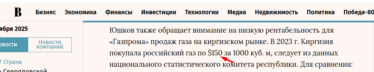 >>61295859 256 долларов минимум (при цене 22) за тыс кубометров учитывая кинутую тобой цену. Цена добычи 20 за 100 кубометров. Итого 236. Потребление кыргызстана пол лярда кубометров где-то. Затраты на газификацию 400 млн. 400 млн при этой цене соответствует 1,5 лярдам кубометров. Итого где-то за 3-4 года полная окупаемость, дальше стрижем купоны.