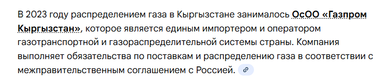 >>61296026 >а зачем ты берешь в расчет цену, по которой уже киргизы сами распределяют? Ты дурачок? Распределяет дочка газпрома в киргизии. Киргизы ничо не закупают кроме как уже потребители. Так что 236. >сюда же надо добавить затраты на транспортировку По газопроводу. КЖХДПП. Щас рядом с газопроводом трассу проведем будем газ на фурах возить. И посчитаем затраты.