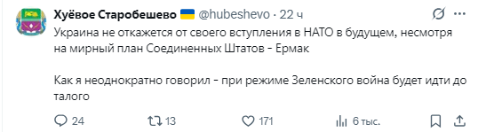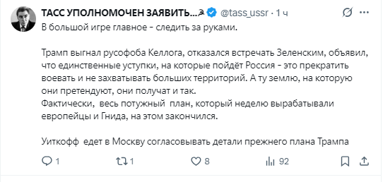 — Замглавы российского МИД Сергей Рябков о мирном плане Трампа: «Ни о каких уступках, ни о какой „сдаче“ ключевых подходов России в контексте СВО не может быть и речи».
