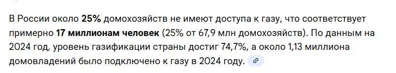 >>61296013 Проблема в том что в России подключить например СНТ к газу стоит нихуевых денег, даже если оно буквально в ста метрах от магистрали газпрома.