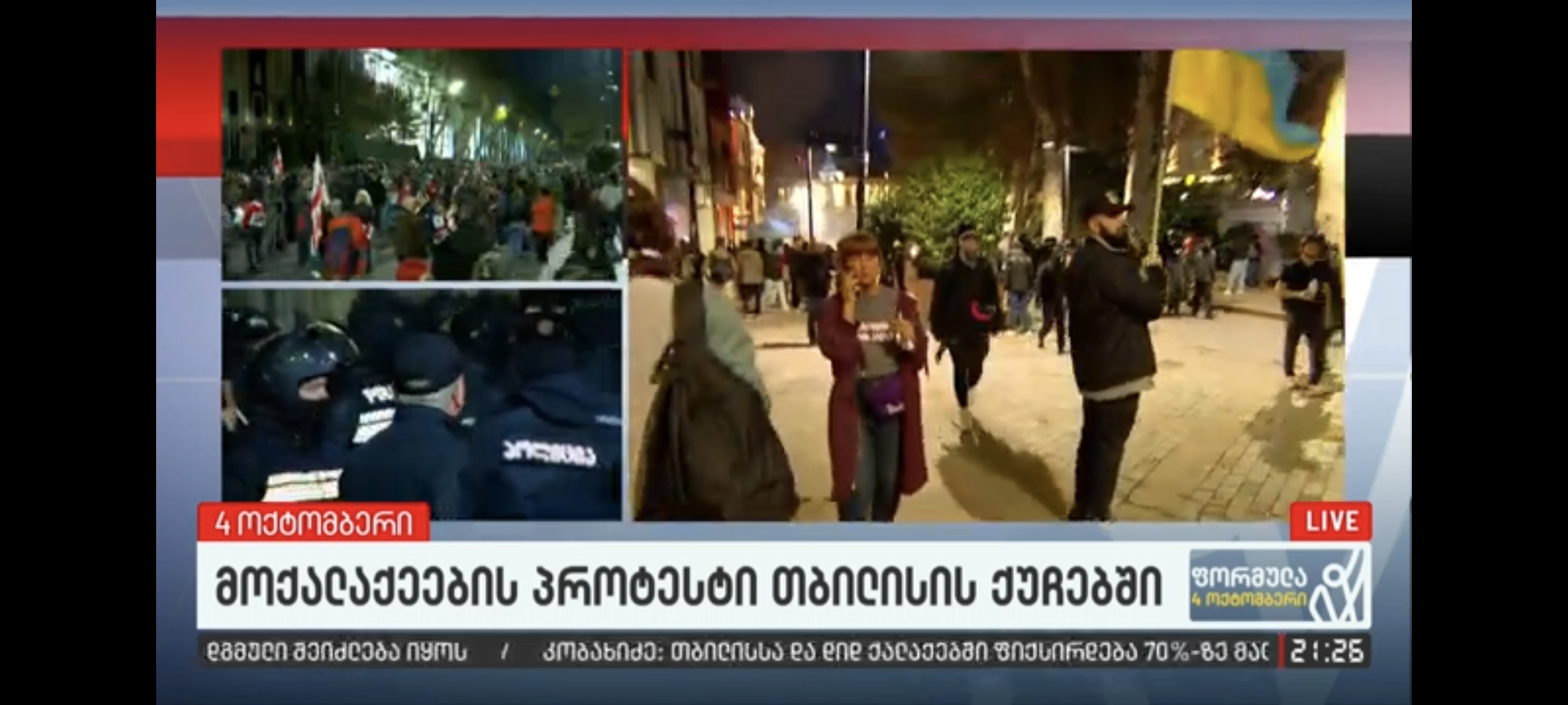— Митингующие подожгли ограждения на площади Свободы, которые они соорудили из мебели для защиты от спецназа. Там сосредоточены основные силы полиции. Также люди забрасывают камнями резиденцию президента Грузии.