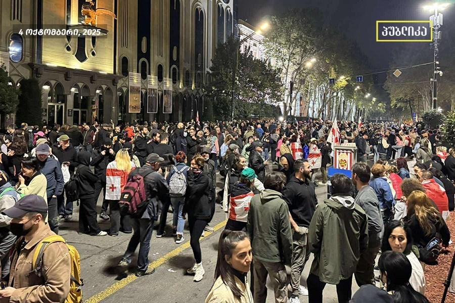 — Участники протеста направляются к офису партии «Грузинская мечта», где сейчас находятся её представители.