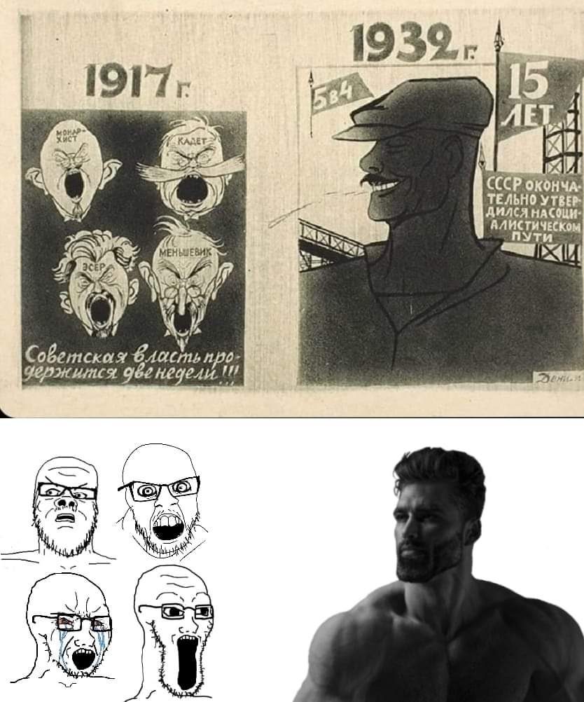 >>60957588 У нас очень размыты критерии предательства. Я, например, считаю, что Украину брать надо. И надо было это делать еще в 2014 году, раз уж туда сунулись, когда у них не было регулярной армии, западных вооружений и финансирования. И повод был хороший - государственный переворот. Власть была не устоявшейся, в руках не пойми кого и в целом украинское население было за нас. Но хорошо, пожевали сопли, у Путина не было тогда такой цели (но зачем Крым забрал?), мы были не готовы выдерживать санкции - ладно, я принимаю аргументы "патриотов". Но у Путина было 10 лет чтобы подготовиться, а не отправить против заведомо враждебно настроенной, озлобленной страны 150к контингент, выстроившийся в маршевую колонну, и вооруженный парадной формой и бубнами. Гитлер взял всю Украину от края до края за 4 месяца, воюя со всей Британской Империей и со всем Советским Союзом. А Путин не может полностью взять Донбасс уже 4 года. Меня это, мягко говоря, фрустрирует, как русского человека. Я предатель? С точки зрения Путина - ДА! А с твоей? Путин же гопник. Каждый гопник с детства знает, что если достал нож - бей или этот нож засунут тебе в жопу. Если затеял блицкриг, то делай быстро или проиграешь.