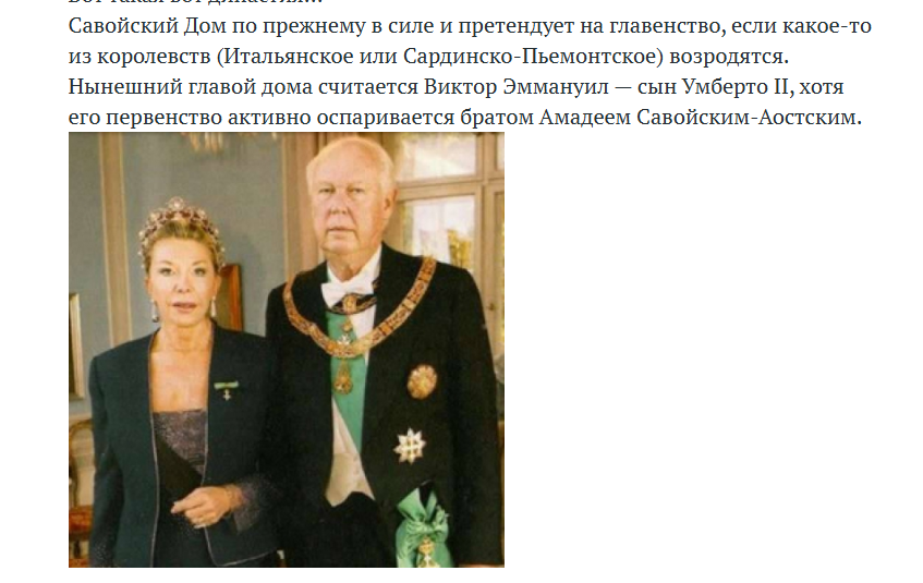 >>60959634 Просто шведы соображают что к чему и на престоле у них сидит представитель Савойского Дома, ибо Семья Буонапарте входит в этот Дом. А Семья Бернадотов входит в Дом Буонапарте. Савойский Дом пидорнул бурбонов во Франции и создал США. Это до сих пор настолько крутая мафия, что наш кооператив "Озеро" нервно курит в сторонке. Вторая мировая война, кстати, тоже их рук дело, в наказание за что они потеряли по итогу Италию, но никто их, разумеется, не судил.