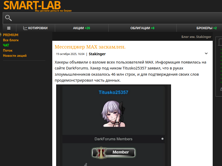 >>61022953 > «Данные пользователей МАХ надежно защищены. Информация об утечке — фейк, распространяемый анонимными источниками». > Пресс-служба МАХ Вот это ебать опровержение. Когда якобы хохлов взломали и закрепные свиньи визжал, там все по полочкам разложили, почему взлом был фейковыми, ведь приложение было с открытым исзодным кодом и все могли увидеть, что там нечего красть. А вот со скамом просто булькнули врети.