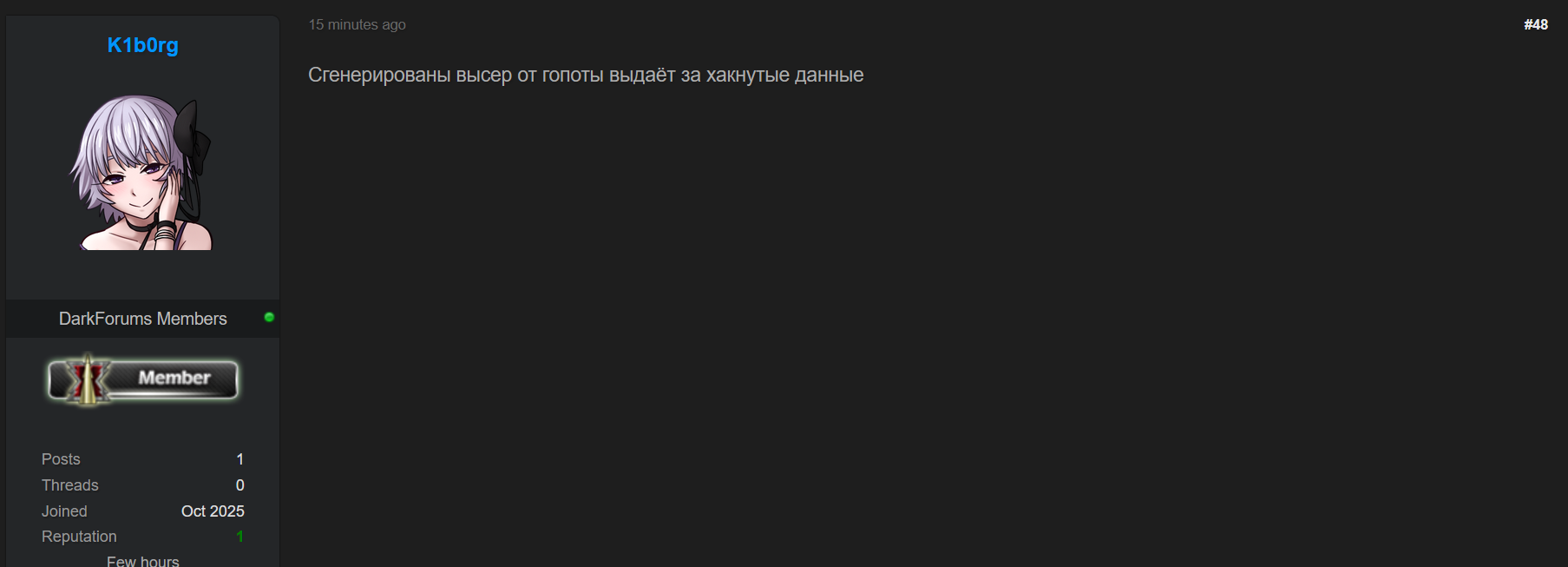 >>61023148 Скорее всего. Если бы делали фейк, то позаботились бы о том, чтобы вылоденный публично пример соответствовал реальным данным. А тут хацкер просто выкачал массив и выложил часть, потому что нахуя ему проверять, если он знает, откуда он его взял. А тут одни боты.