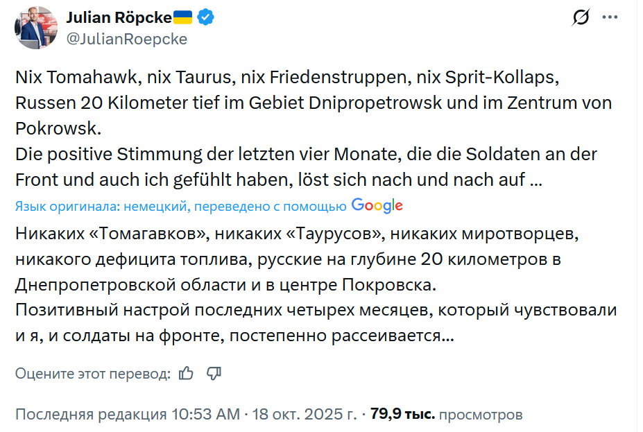 Источник сообщает, что Путин предупредил Трампа, что если Зеленский продолжит повышать ставки в инфраструктурной войне, устраивая провокации, то РФ серьезно применит свое новое оружие, которое уже готово. Трамп озвучил это Зеленскому на встречи, на что Зе ответил ухмылкой и сказал, что Путин блефует. Трамп был также из-за этого раздражен, как из-за того, что Зе лжет ему по ситуации на фронте. Вся встреча в Вашингтоне прошла на повышенных тонах и больше была похожа на то, что Зе вызвали на ковёр, а не на милую беседу. По слухам, Зеленский считает, что нельзя допустить встречу в Будапеште, так как она будет символизировать условное поражение Украины. Трамп хочет там подписать некие мирные соглашения, которые уже были озвучены Зеленскому.