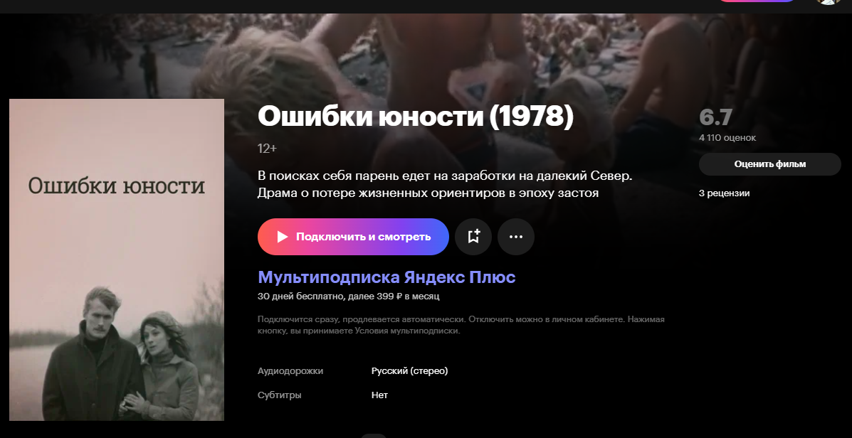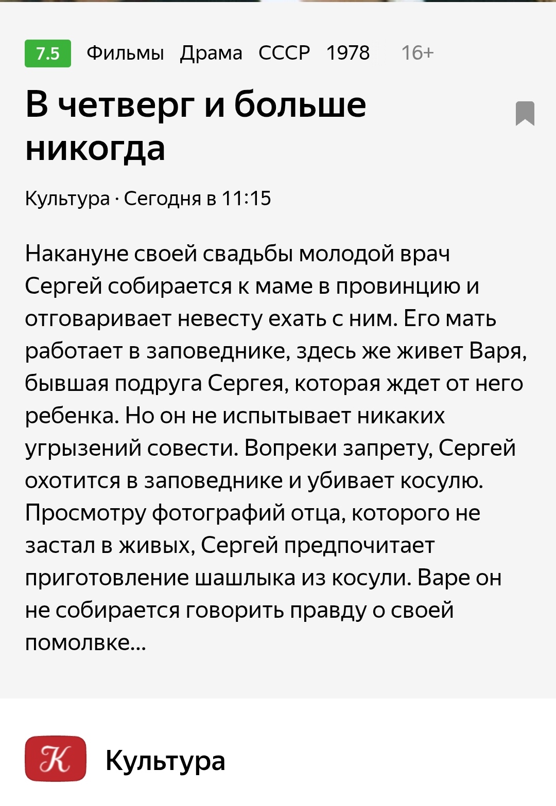 >>61030653 Лютую годноту палю, которую даже в 90-х и 00-х по телеку не крутили, вот очень крутой, качественный реализм конца 70-х, про безыдейность и цинизм застоя, показанный через жизнь молодго нормиса. На полке 10 лет пролежал, такое тока тока в конце 80-х начали массово снимать. А в этом фильме и звезды снимались типа Варлей и Караченцева.