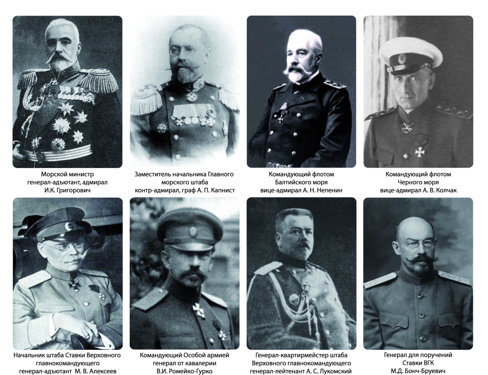 Генерал Иудович Иванов с "карательной экспедицией" заблудился, хотя по свидетельствам очевидцев ко 2-му марта Петроградский гарнизон разложился до соплей и серьезной организованной силы не представлял. Тогда же командующим Петроградским военным округом назначен сияющий красным бантом Лавр Корнилов. Ну а другие господа начальственные генералы, как известно, параллельно изолировали Николая в штабе Северного фронта и вели активную переписку по телеграфу. Нагоняли жути, да. Деникин вдохновенно врёт одновременно выгораживая и высвечивая одного из тех, кто, вероятно, весь сей компот с двойными "отречениями" и затеял. Наряду со своим якобы отречением, Николай якобы подписал ещё два указа — о назначении председателем Совета министров Львова, и Верховным главнокомандующим — великого князя Николая Николаевича. Только уже 9 марта "в связи с общим отношением к династии Романовых" мазепе Николаю Николаевичу дали под зад коленом. Это, конечно, "смешно, право: люди, совершившие революцию, и тут же вдруг оказавшиеся отстраненными кем-то, не имевшим к ней отношения". Непенин "с трудом удержал флот" - застрелили. Ник Ник с трудом удержал Николая - дали пинка. И, конечно, можно вспомнить, что "революцию делали", в основном, эсеры, а потом "оказались отстраненными", практически не имевшими к ней отношения большевиками. Задним числом приписавшими все заслуги себе. И "ленинскую гвардию" по спискам перестреляли и пересадили люди, в свою очередь не имевшие отношения к Октябрю. Революция это цепь переворотов, когда первых переворотчиков переворачивает следующая волна. И люди, совершившие революцию и потом отстраненными кем-то другим - не исключение, а правило. И в февральском перевороте "отстраненные люди" вполне себе вытанцовываются. Вот некоторых вытанцовывающихся я и собрал на февральскую Доску почета памяти. Пока только генералов, которые так или иначе засветились участием или поддержкой переворота. На "200 автоматчиков" места в одном посте не хватит, хотя бы самых основных. К сожалению не смог найти фото адмиралов Небольсина и Максимова. Ну и заранее допускаю, что по ошибке мог кого-то забыть или по ней же не туда вставить. Ну да на то она и помощь зала.