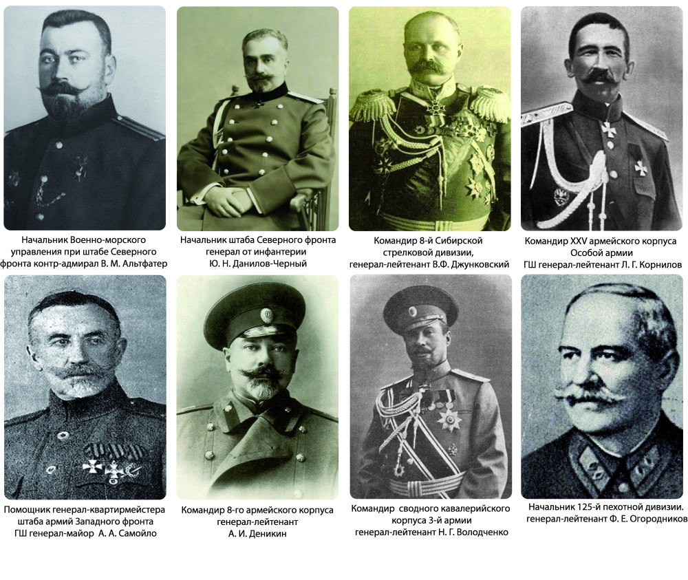 Вот так и сделали. Фальшивое отречение в условиях информационной блокады "выбивало из рук монархистов всякое оружие". Тем более, что информация шла от Лиц, которые по определению воспринимались офицерским сознанием, как носители и блюстители эталонной офицерской Чести. "Полковник Люфтваффе не может врать". Ну и в советском сознании действия этих людей, с опорой на писания февралистов, создали образ всеобъемлющего предательства вообще, а уж русский генералитет из предателей состоял практически весь. Только далеко не весь. Список генералам по старшинству Исправлен по 10-е июля 1916 г. содержит примерно тысячу фамилий русских генералов. Конечно, не все были командующими и далеко не все в действующей армии. Но предатели составляют 5%-10%. Но верхних. В течение нескольких недель из армии за "нелояльность" мазепам вышибли до полутораста старших начальников, в том числе 70 начальников пехотных и кавалерийских дивизий. Деникин и тут умудряется сделать сеанс саморазоблачения: