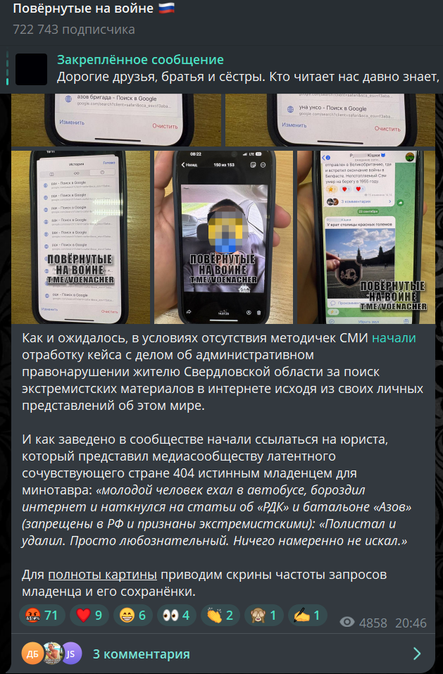 В России завели первое дело за поиск экстремистских материалов в интернете, данные силовикам слил оп