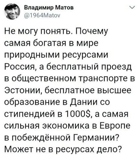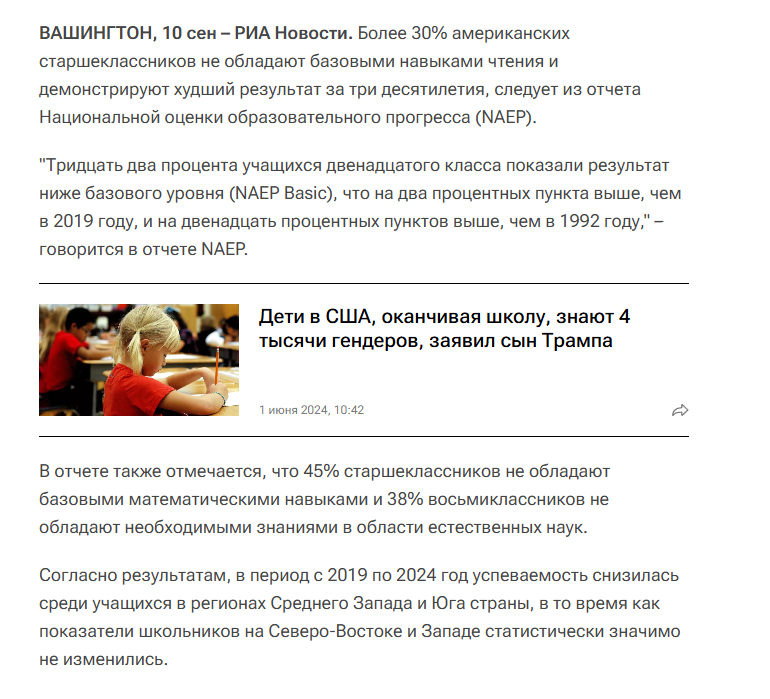 Хоть я и думаю что на западе образование лучше, а оно лучше если учесть все мелкие факторы по типу того что там не принято списывать, коррупции меньше, и тд. Но очевидно разница не небо и земля. Основная разница в самой системе институтов, которые у нас уже потихоньку загнивают, пока власть все под свою руку сметает. Убей в бургерленде президента ничего кардинально не изменится, а если Путина тут не станет то система развалится уже полностью как будто. Чисто мои 5 копеек, которые и так всем очевидны мне кажется, но высрал так как делать нехуй, хули на этой борде еще делать, пиздуйте работать долбаебы.