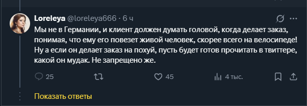 >>61237177 (OP) Я чот тоже начинаю подохуевать с требованием обслуги что клиенты им что-то должны. Если не нравятся тяжелые заказы, то пусть договариваются со своим говносервисом чтобы тебе их не давали, не можешь это делать - твои проблемы.