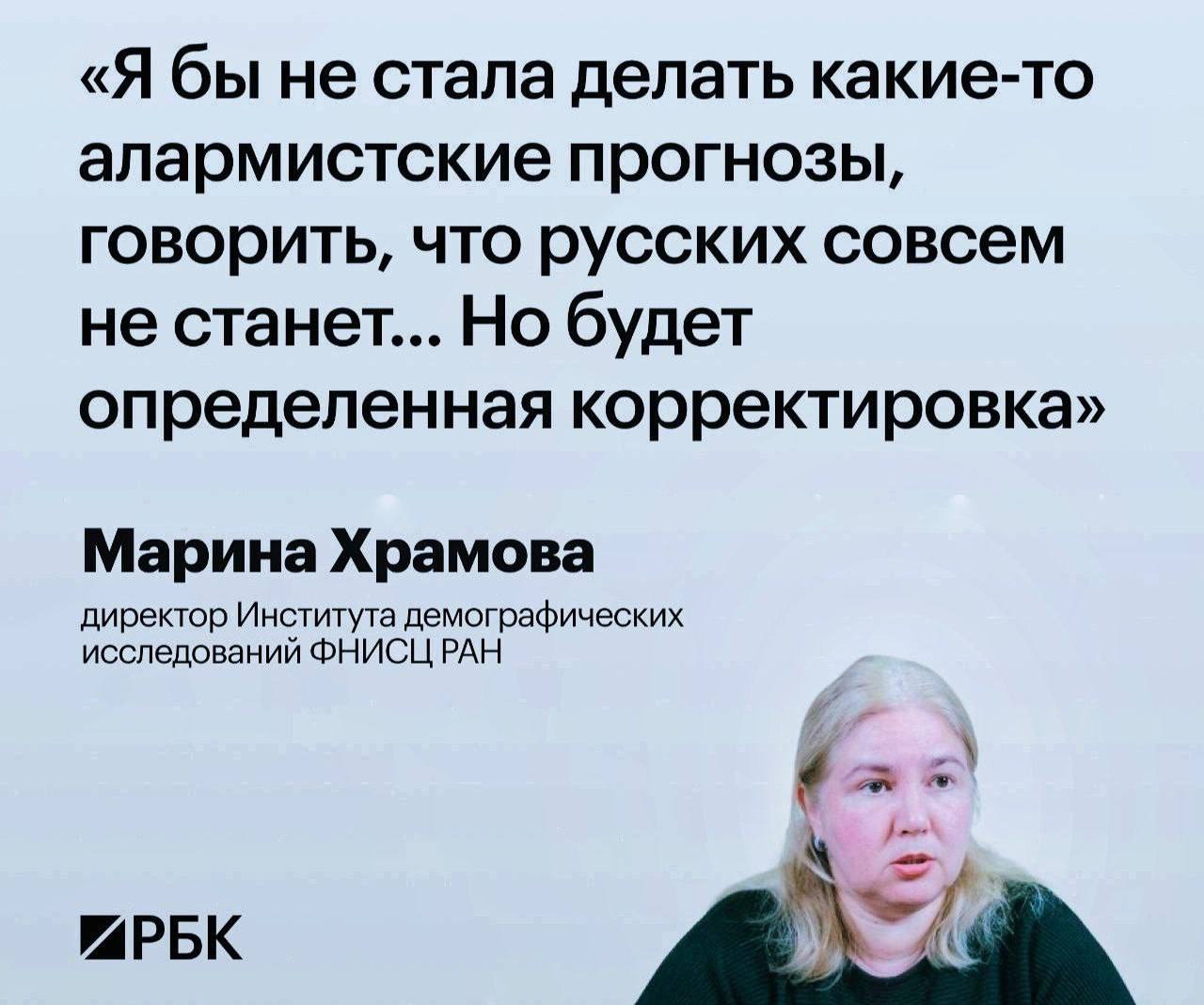 Получается, что к концу века в РФ станет на 25,7 млн мигрантов и их потомков больше, а доля русских снизится с 81% до 59,8%. Крайне опасный сценарий, когда русские практически перестают быть большинством в собственной стране.