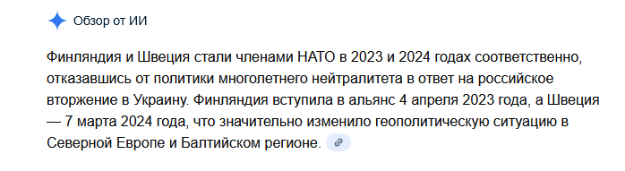 Факт: Ультиматум был: «Собирайте манатки и убирайтесь к границам 1997 года». Реальность: НАТО расширилось на Финляндию и Швецию, граница с альянсом увеличилась вдвое, Балтика стала внутренним морем НАТО. Твой «ультиматум» подтерли, а геостратег получил результат, строго обратный заявленному.