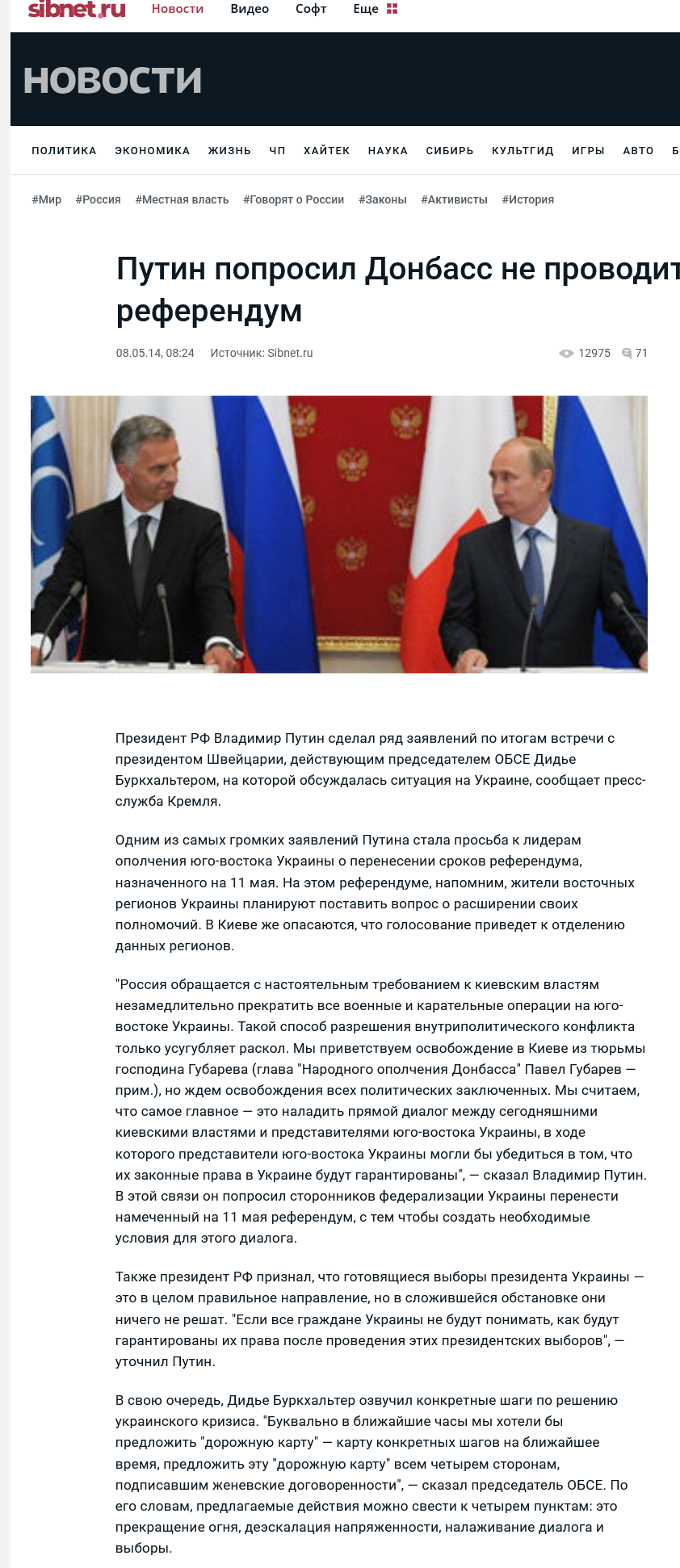 >>61244579 А я тебе напомню украинских ихтамнетов, которые приперлись воевать против России в 1994 и в 1999, а потом украинский презик что сказал ? И еще напомню, что Путин этот референдум не признал, как их независимость, и хохлы 8 лет терроризировали Донбасс. А напротив - заставил лидеров ополченцев подписать Минские соглашения, по которым ЛДНР реинтегрировались обратно на Украину. - Такие вот "хитрые манипуляции по отжатию". И теперь подумай какую роль в этом играл Стрелков, и где он сейчас...
