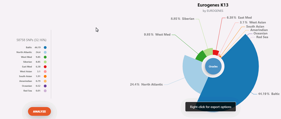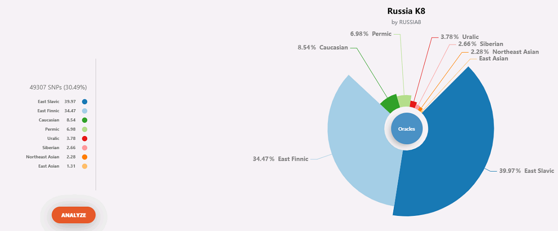 так и живем, на генотеке 96% русский 4% полволжские татары. загрузил файл на genoplot.com. у меня файл с генотека конвертированный под разные форматы был. но особой разницы с калькуляторами гетматча не заметил, на гетматче удобнее даже было. Но почему то не могу в акк зайти, либо он удален и новый не дает создать