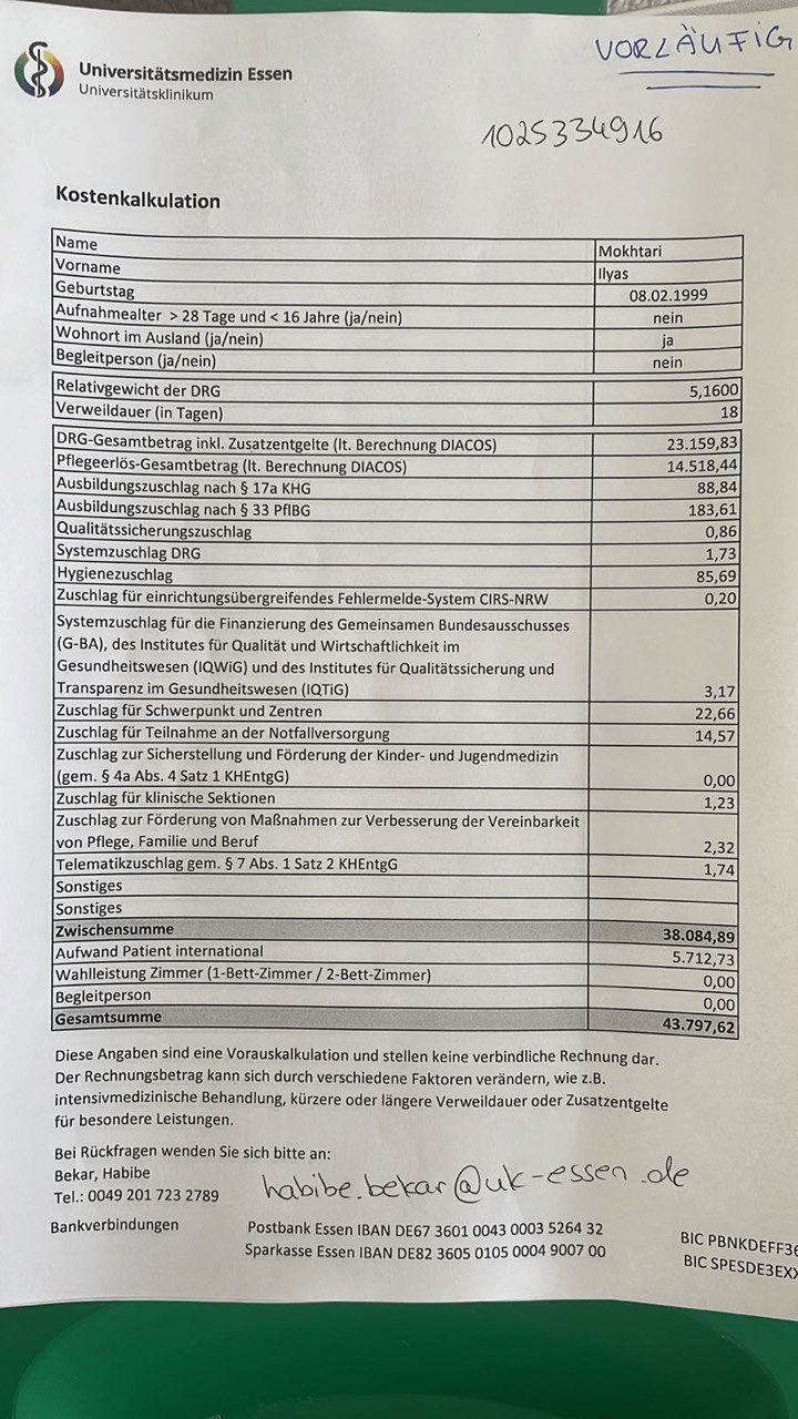 >>61275489 (OP) Он в своей истории буквально пишет, что у него нет немецкой страховки. >на наличие действующей туристической страховки Он болеет какой-то очень заебной генетической болезнью, при которой лечение стоит как крыло самолета. Туристическая страховка не покрывает это. Ты не можешь прилететь в Германию с туристической страховкой болея раком и надеяться, что тебя по ней вылечат.