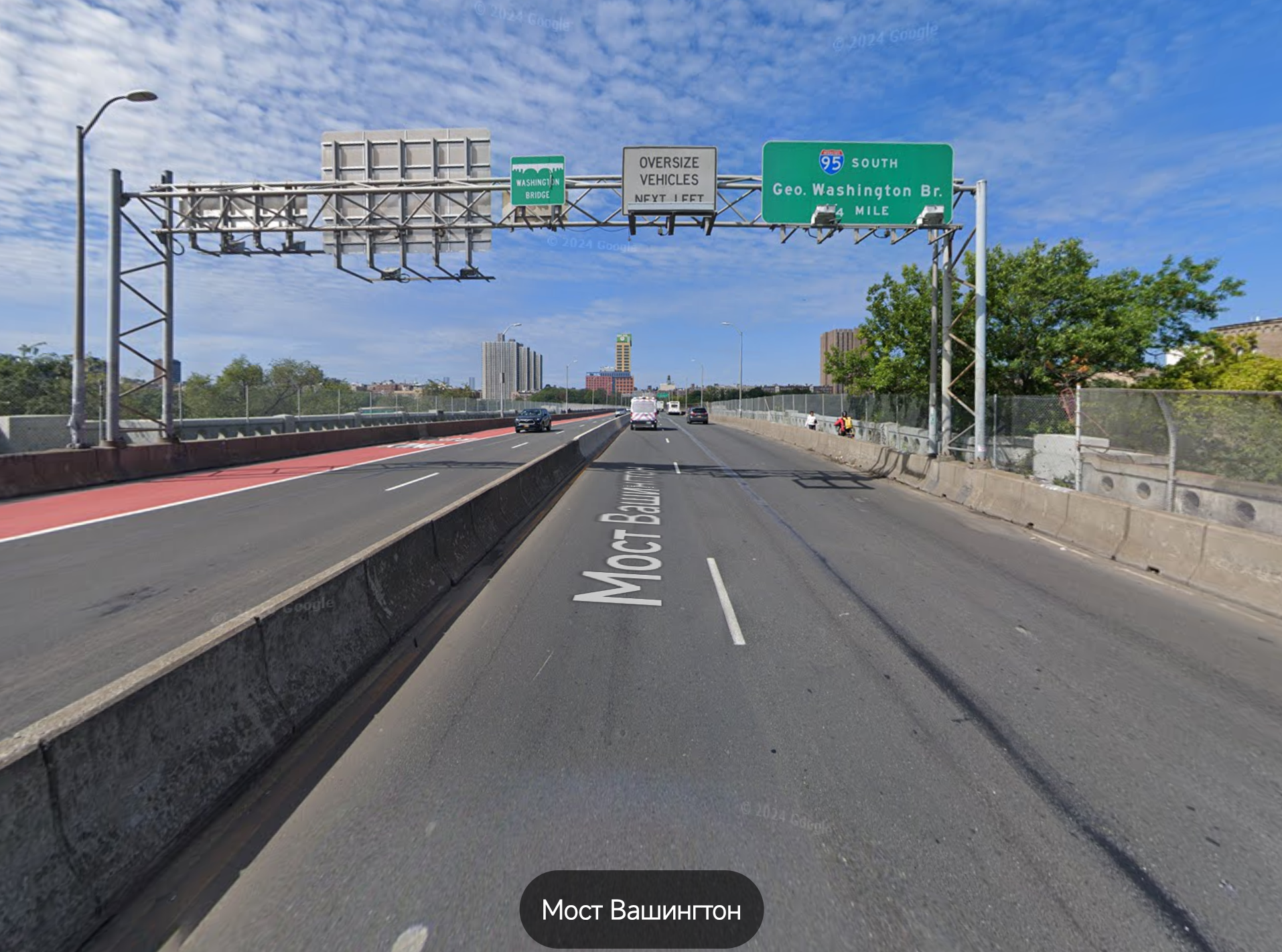 В Нью-Йоркщине куча платных дорог. И один из чемпионов это washingtong bridge. Бешеный трафик, с грузовика с прицепом берут от 120 долларов. 10 0000 на наши. За один проезд, да.