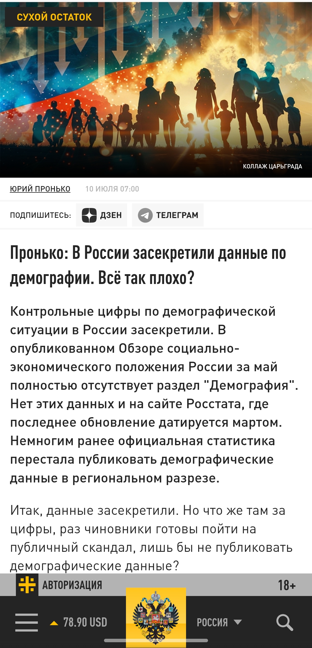 >Русские не вымирают, вот, посмотрите, вообще никаких изменений численности! Это как с потерями ВСУ. Сначала РИА озвучили маняцифры, потом срочно пришлось изобретать хакеров, которые в точности эти самые цифры украли у хохлов в ходе "взлома". Начальство же распорядилось, чтобы пруфы были железобетонными.