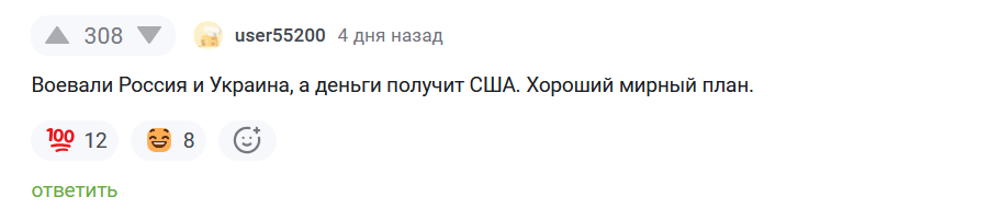 >>61285928 Тон у поста ещё какой-то странный, как будто мужику обидно. Мол, сражались Украина и Россия, кому-то должен был приз достаться, и ему обидно что это какие-то американцы, которые не участвовали в конкурсе, получают профит.