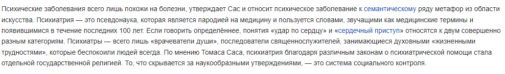 >>61295350 База. Психиатрия это жидовские выдумки уровня порчи но под вывеской типа новуки. Реальные болезни мозга лечит невролог. (((Диагнозы))) ставятся на основе третьего глаза (((специалиста))), как и появляются (((психические болезни))). Пока что наукой не доказано существование ни одной (((психической болезни)))