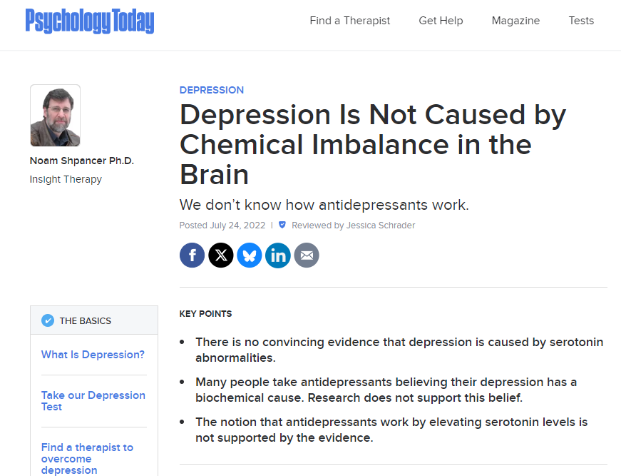>>61296287 Т.н. (((психические заболевания))) это следствие хуевой жизни, не зря же они в основном у нищуков, а не магическая болезнь, которая якобы лечится магическими таблеточками. Чтобы "вылечиться" от (((психической болезни))) нужно завести хорошую жизнь, а не пить гойские таблетки. Тем более, что реальная наука опровергает утверждения ((психииатрии))). Например, распространенное заблуждение, что (((депрессия))) якобы вызвана химическим дисбалансом в мозге. Разумеется, все это были выдумки (((бигфармы))) чтобы гойские покупали гойблетки. >The causes of depression have been long debated, yet a common explanation holds that the culprit is “chemical imbalance” in the brain. This notion emerged, not coincidentally, in the late '80s with the introduction of Prozac—a drug that appeared to be helpful in treating depression by increasing levels of the brain neurotransmitter serotonin.
