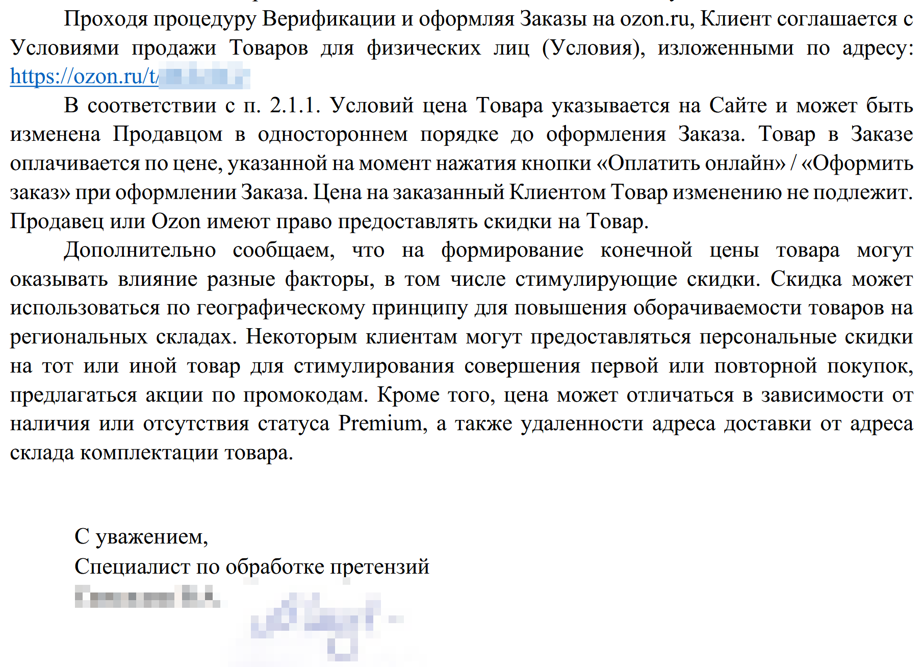 >>61294556 (OP) Озон вообще пидорасы гнойные, они мне начали на аккаунте крутить цены ВЫШЕ чем в браузере. Претензию отправил (бумажным письмом, по почте прямо в москва-сити хуй сасити) так ответ прилип как PDF в чате мол пук-среньк это индивидуальные скидки (хотя меняется и серая цена тоже). Думаю теперь телегу в ФАС написать или Роспотребназдор, чёто мрази поприхуели.
