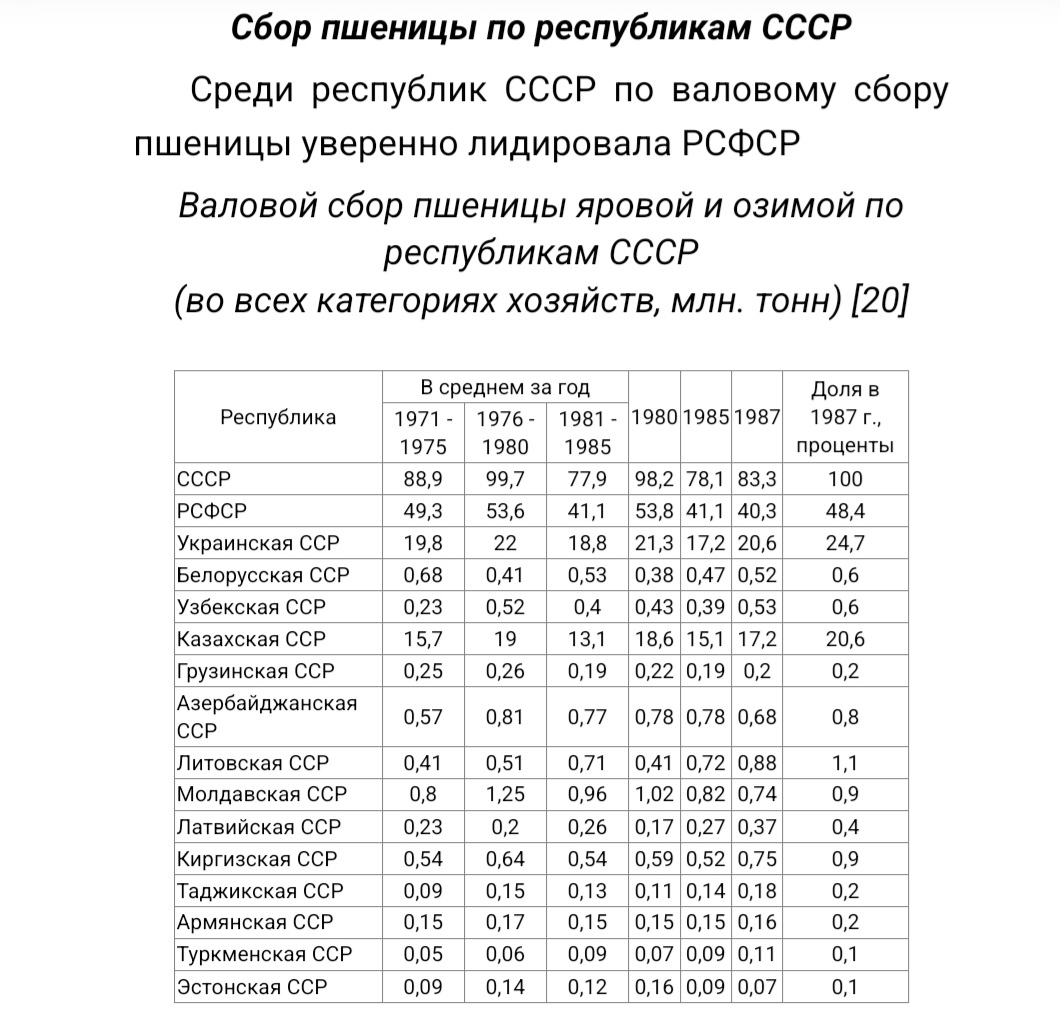 >>61298178 Ну так ты сам и пруфанул то, что я написал. Буквально только в РСФСР и Украине и росла эта пшеница. Даже потуги в Казахстане - убыточное априори говно в духе ПОКОРИМ ЦЕЛИНУ. Буквально совки кормили на 150кк рыл больше за счёт практически того же объёма земель.