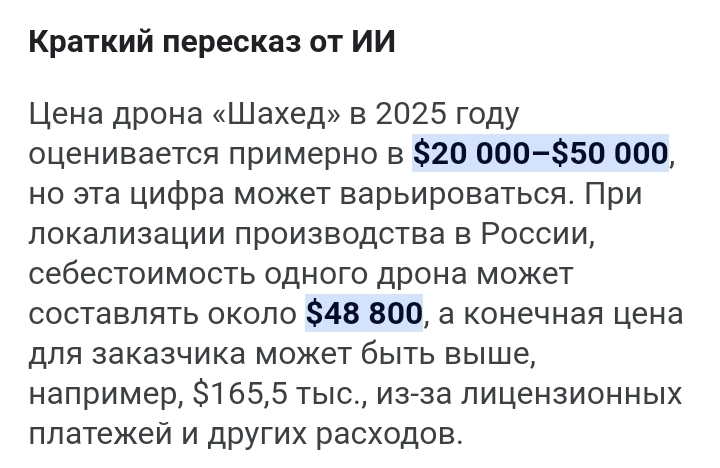>>61347589 А бля, там даже больше выйдет. Там один реактивный шахед 150kk бачей стоит. Просто, посриврот, когда радуешься очереднымкам, "уиии уиии" лайкаешь и пр, вспоминай о цене и своей нищей мамке дрочащей копейки в пяторочке