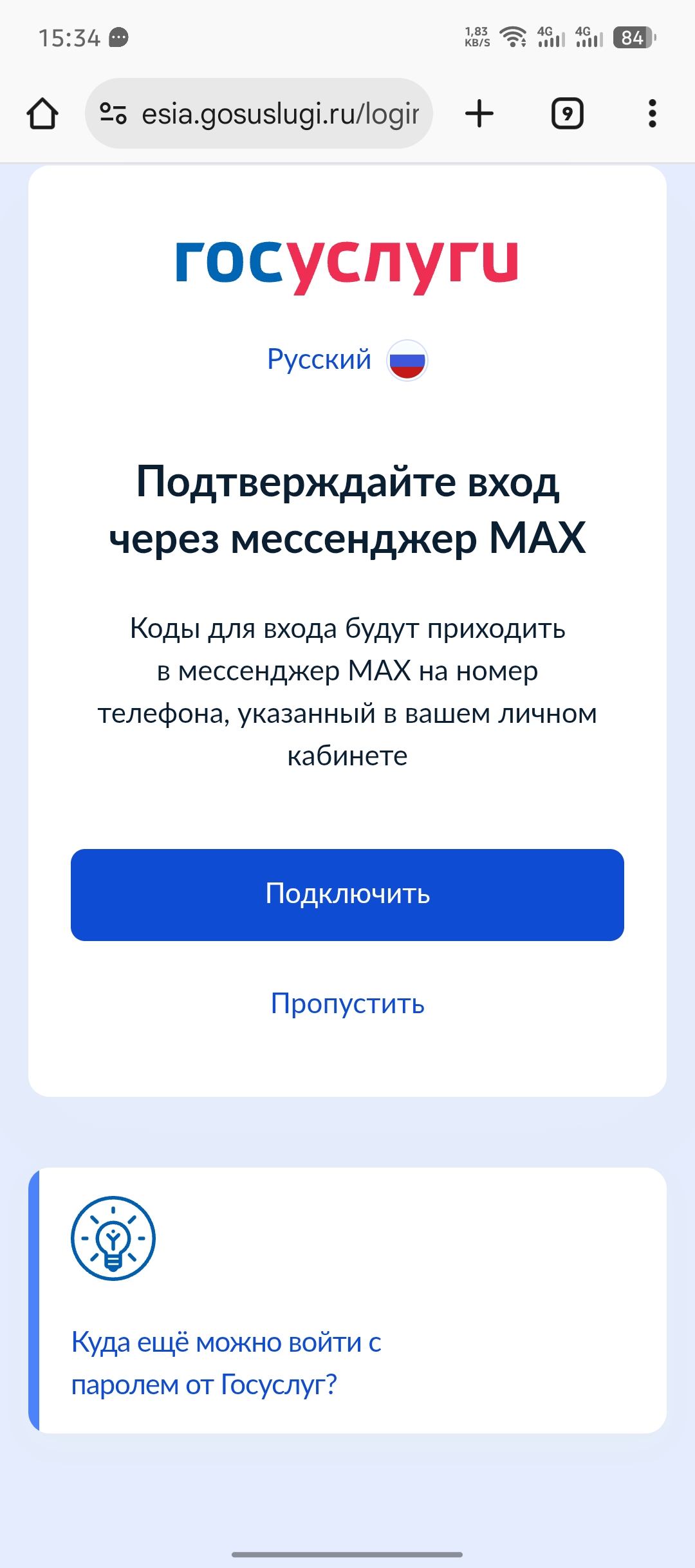 Ну и паблики зарегистрированные в госуслугах начали это постить. Ньюсач подтверждает прикол с мобильным браузером, но опять, сделано специально, чтобы была неоднозначность. У меня нет в мобильное браузуре Пропустить и скрины в оп посте с телефона. Приходит смс, потом говорит скачивать Макс. Всё блядь.