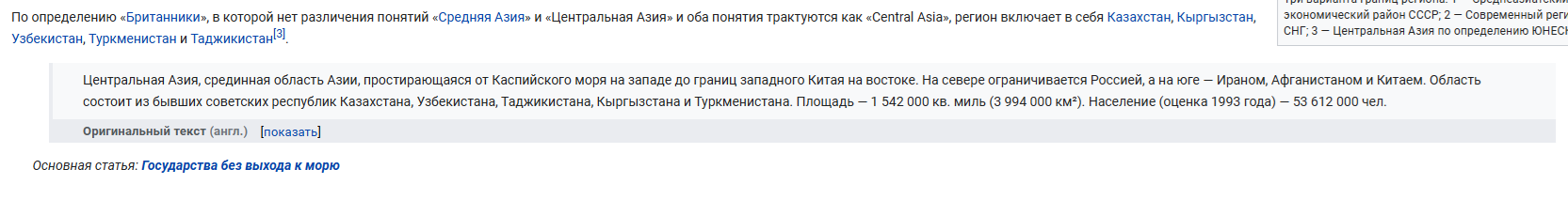 >>61358694 >в словаре написано - включается южная часть Казахстана Ты стекломоя перепил пидоранчик? Что значит "иногда" и "включалась"? Даже из твоих картиночек из вики цитирую Британнику "нет различения понятий «Средняя Азия» и «Центральная Азия»"