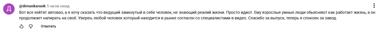 Да, у Автоваза могут быть проблемы, но давайте в этот год просто на минуту представим, что вот именно Автоваз это наш Райан, и спасём его всей нацией. Спасибо.