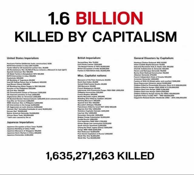 И так примерно по каждому пункту, лень даже ковырять это говно. Некий хуесос поковыряв пальцем в жопе высрал картинку с цифрами с потолка и криками ПАЛТАРА МИЛЛИАРДА УБИТЫХ КОПЕТАЛИСТАМИ!!!!