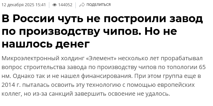 >>61441214 >но не получится ничего из ассортимента, чуть более приближенного к современности. Получится просто дохуя всего, все микроконтроллеры от промышленности до бытовой техники можно на нем делать. Но один хуй даже это не взлетит т.к. мало сделать микроконтроллер, нужно еще и сделать его сопровождение для корпоративного сегмента и разработчиков и чтобы при этом по цене-качество была конкурентоспособность, а как мы все видим на примере всяких Эльбрусов хуй там плавал, а не цена-качество.
