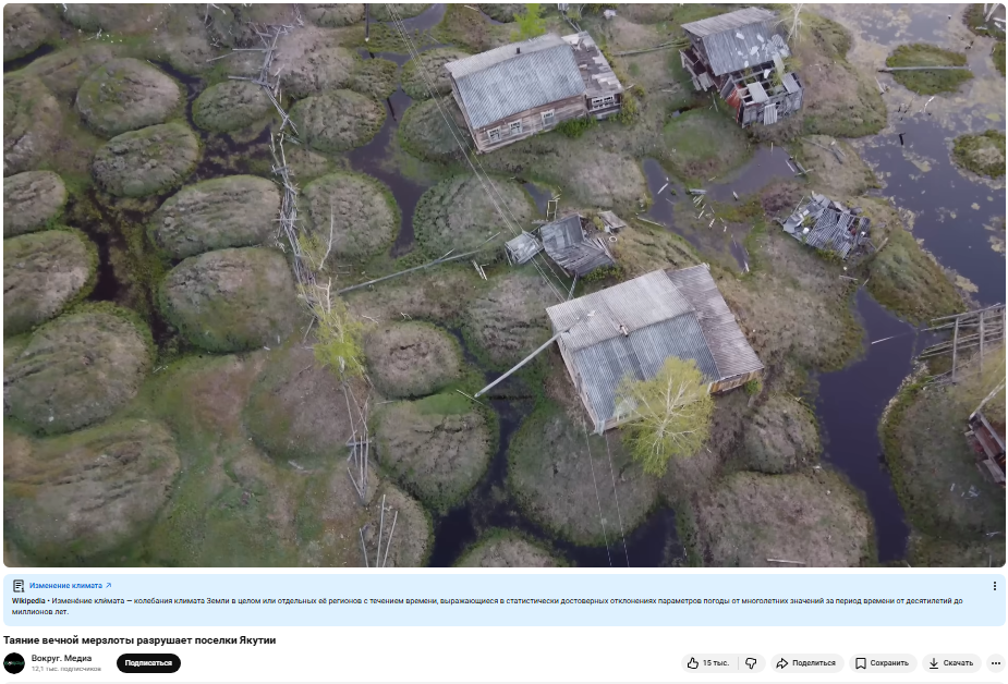Вот есть безобидное видно под названием Таяние вечной мерзлоты разрушает поселки Якутии