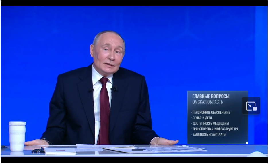 Если коротко трансляция выглядит так, все отлично и хорошо, посмотрите какой я молодец и хороший мальчик. Нехватает денег? Посмотри как мы четвёртый год стремительно наступаем и освобождаем руины украинских деревень. Кстати освобождаем не только от хохлов и русских, этнические русские сокращаются ежегодно миллионами и на их место приходят мигранты. Я молодец, я вас всех спас, я лучший президент в мире, я умный и красивый.