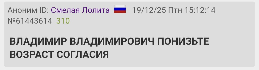 Аноним ID: Эпатажный Иван Сученко19/12/25 Птн 15:47:28№61443949510