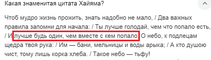 Лучше впасть в нищету, голодать или красть, Чем в число блюдолизов презренных попасть. Лучше кости глодать, чем прельститься сластями За столом у мерзавцев, имеющих власть.
