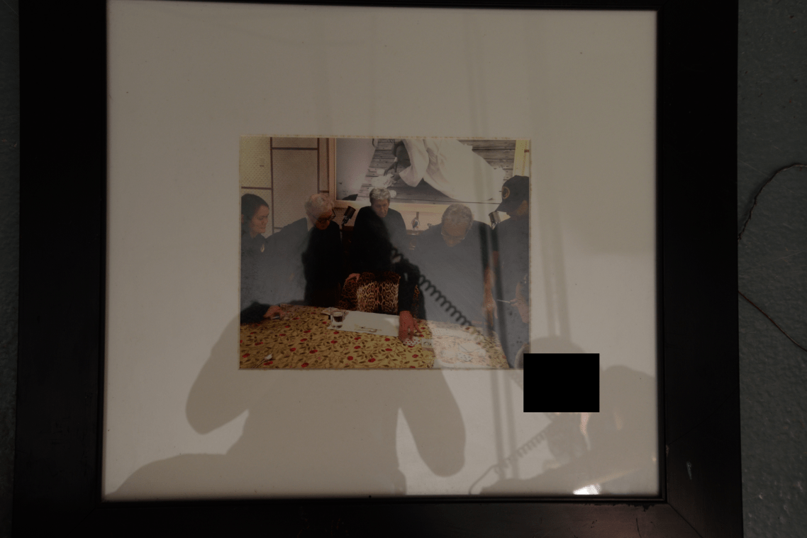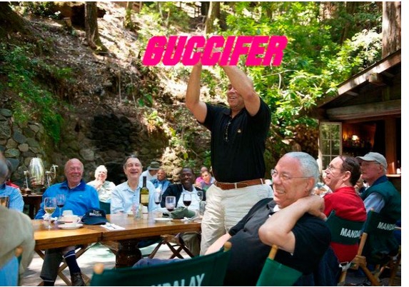 На фото из взломанной почты Колина Пауэлла на тайной вечеринке Bohemian Grove демонстрируется гостям характерный знак Guccifer, среди гостей известные актеры Джордж Кеннеди и Малкольм Макдауэлл.