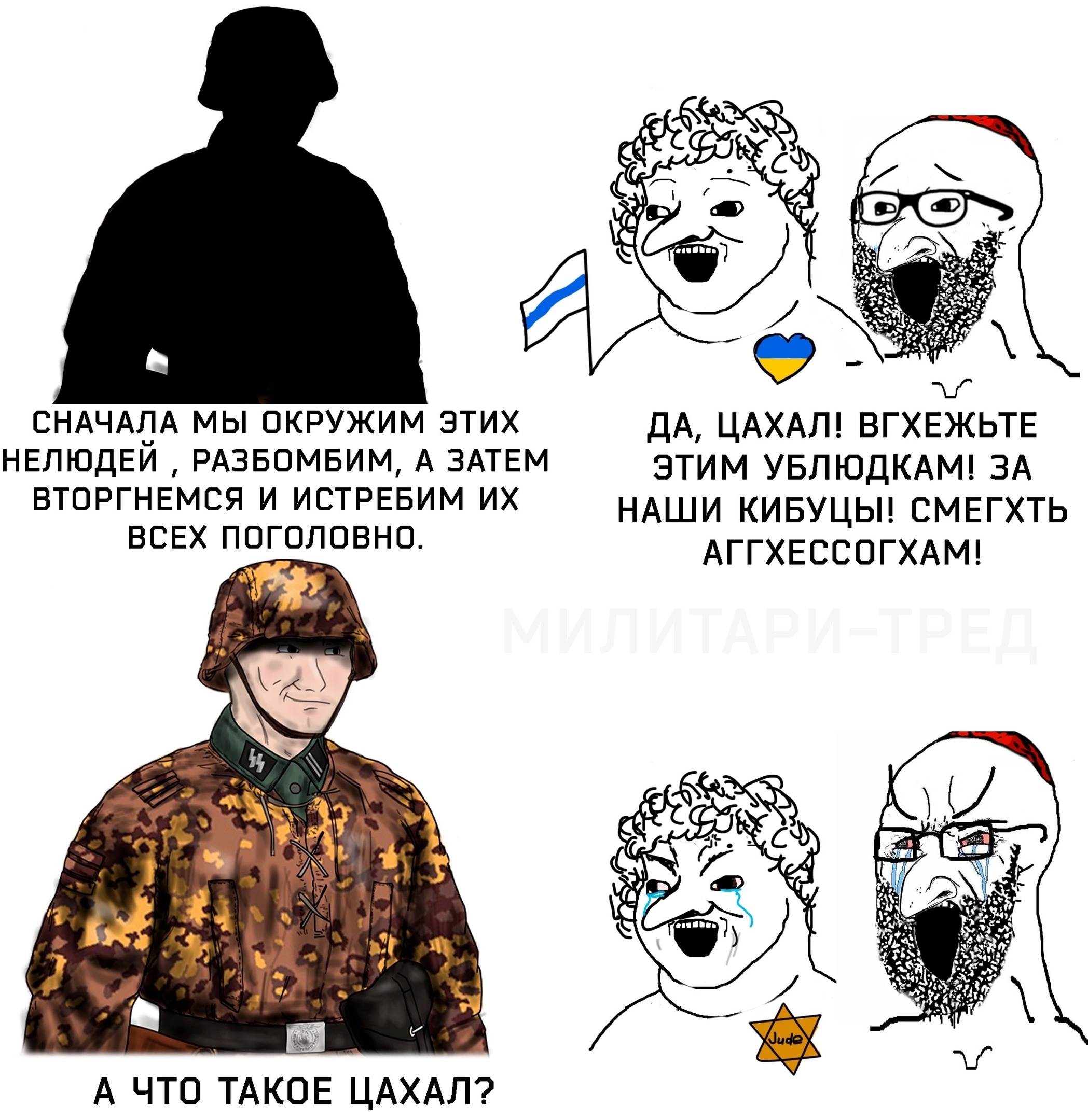 >>61449901 >Они его харкали Кого его харкали? >на полицейских с ножом, которые стоят и ничего не делают Почему полицейские стоят и ничего не делают на чужой земле? Почему им не предъявляют обвинения в нападении, а просто удерживают в тюрьмах десятки лет? >Тут постили подборку этих видео. Извини, мне не интересна ваша пропаганда. Я уже про обезглавленных младенцев и мальчика в духовке наслышан. >Просто так никого не сажают Где предъявленные обвинений? Почему их тогда потом так же просто отпускают, когда ХАМАС их меняет на свиней?