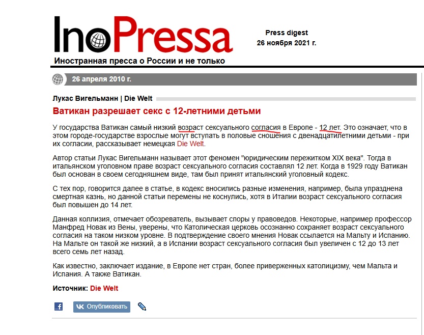 Просто в силу того, что на протяжении последних 20 лет есть огромная масса доказанных преступлений политиков-педофилов в Европе и США.