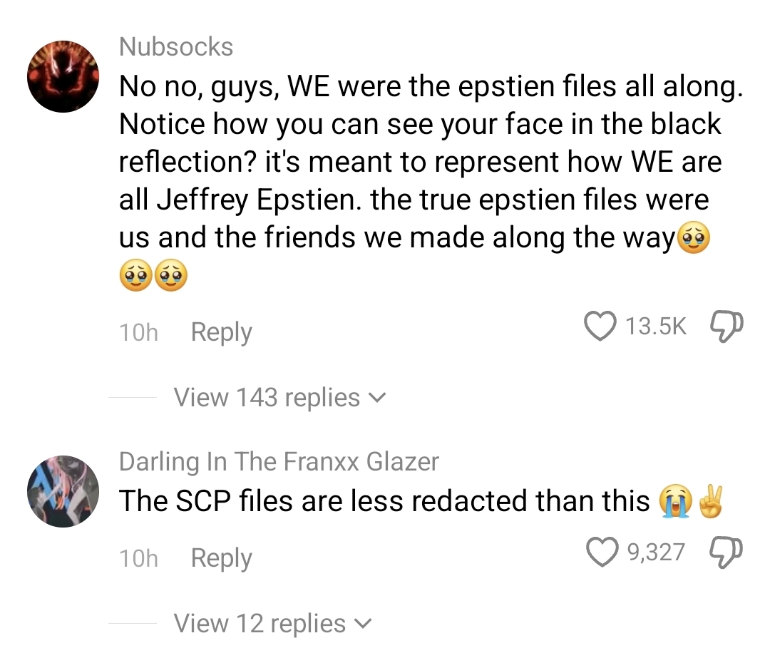 Я правильно понимаю, что файлы отредакченные выпустили и в них буквально ничего нет. Ну т.е. вообще ничего. Нет имён кто кого ебал и когда, нет фоток, вообще ничего. Нахуя тогда было их выпускать вообще.