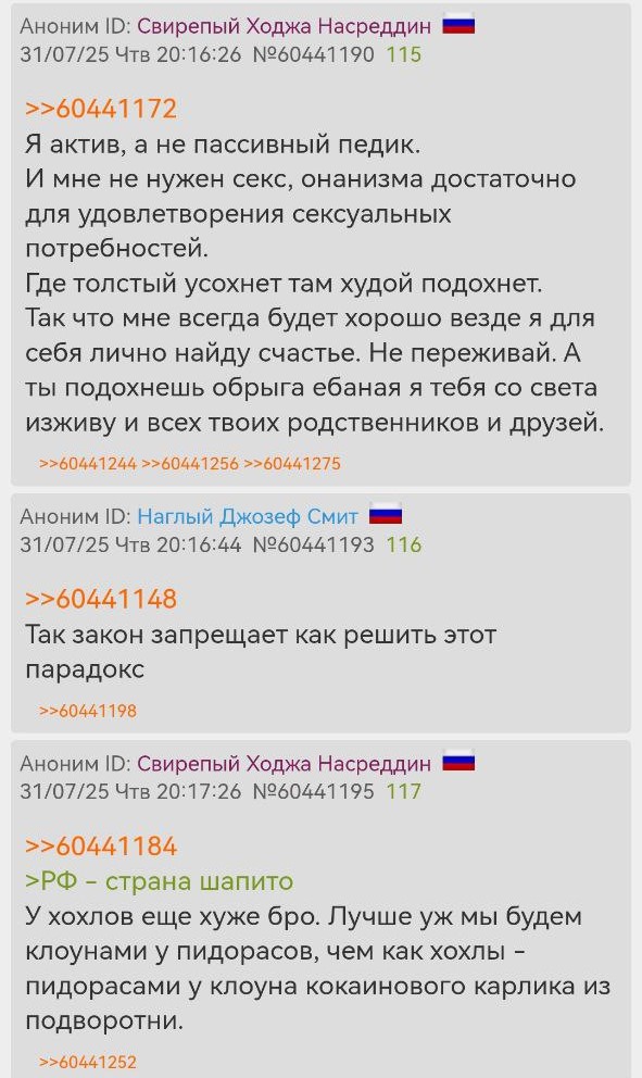К сведению анонов, все эти набигающие люди с "обрыгами" и прочим говносленгом это ваши соседи по доске, там целый закреп таких "каримок", по сути обитатели бывшего крымотреда и те кто хотят сидеть в реверсивном по где их не обоссывают за патриотичную позицию.
