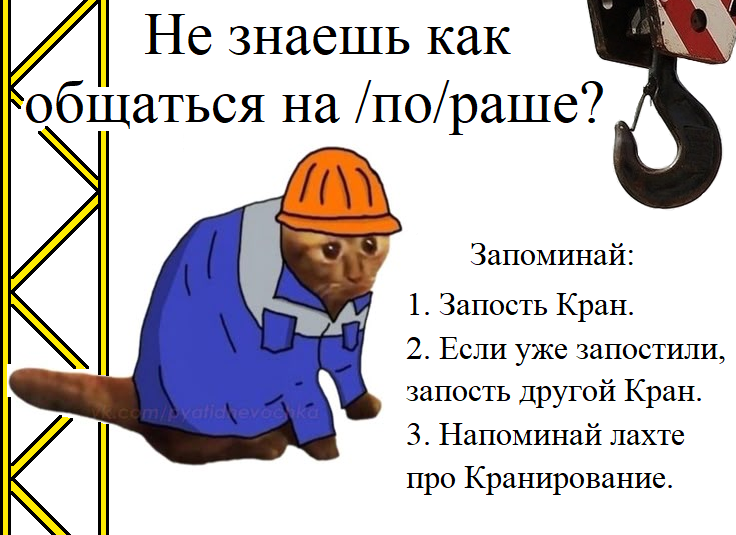 >>61468021 >Откуда вообще эта тема с кранами пошла? Один анон форсил видос, как брата Ассада, не успевшего съебаться, подняли на кране, потом какой-то анон сделал картинку с лахта-центром, потом к ней добавили видос с братом ассада, потом пошло поехало.