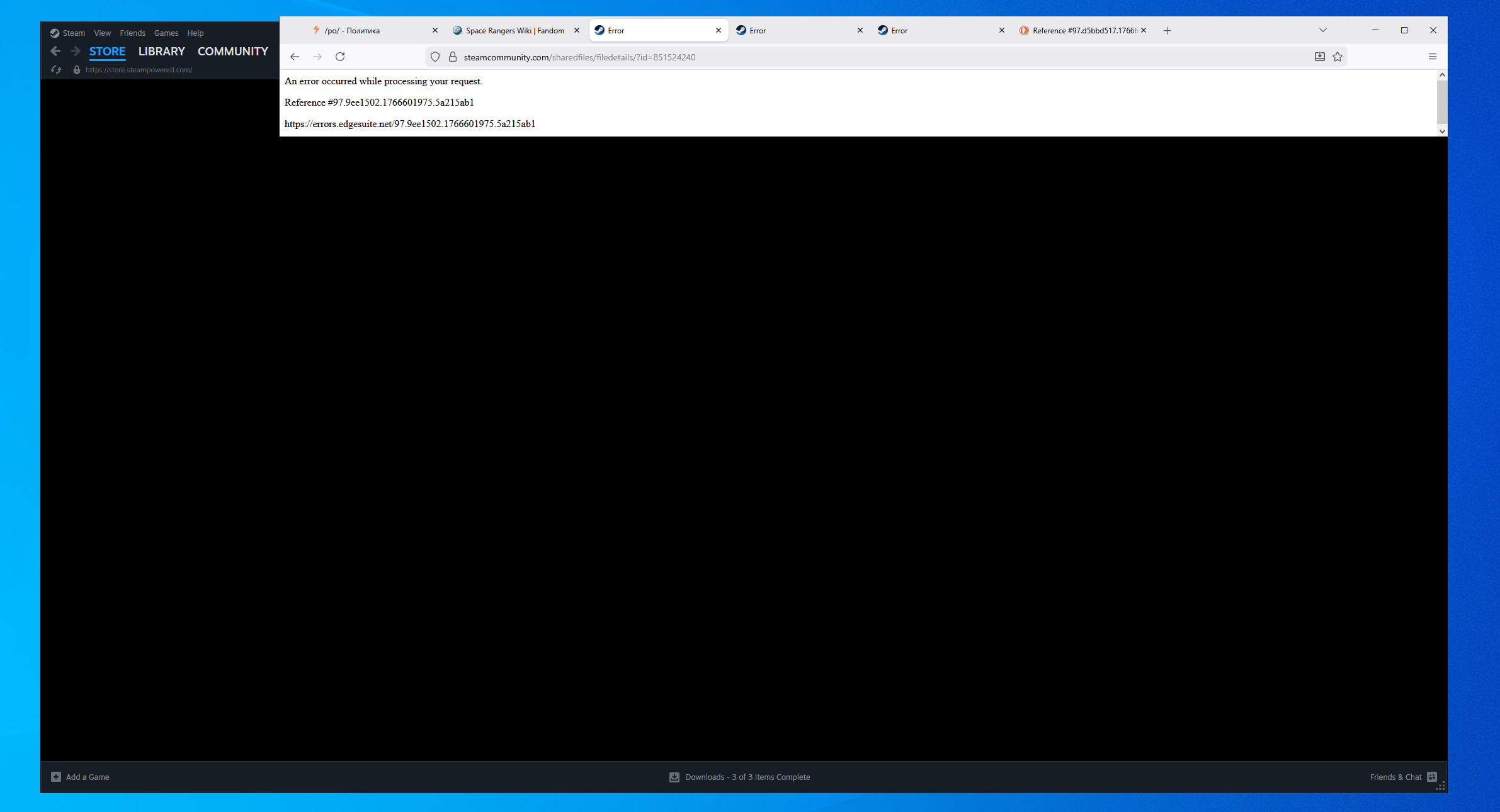 Причём со всем известным техническим решением - всё работает. Забавно то, что БЕЗ технического решения, загрузка работает, но при попытке достучаться до сообщества или магазина - хуй. Полный.