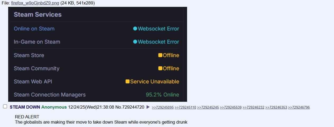 >>61473239 (OP) >загрузка работает, но при попытке достучаться до сообщества или магазина - хуй. Полный. Загрузка на российских сервисах. Сообщество на акамаи и прочем западном.