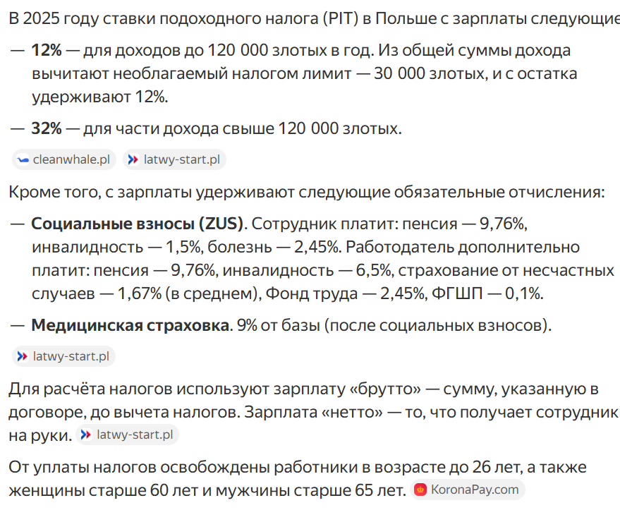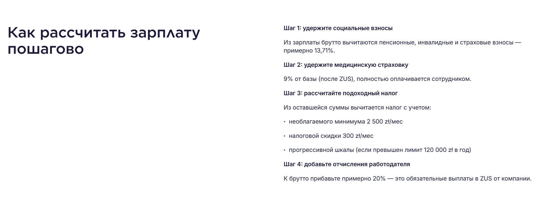 Зарплата брутто — это сумма, указанная в договоре. Именно с неё считаются все налоги в Польше с зарплаты. Зарплата нетто — это то, что получает сотрудник после удержаний. Разница между ними — это: налог с зарплаты взносы в ZUS медицинское страхование https://latwy-start.pl/payroll-tax-in-poland/
