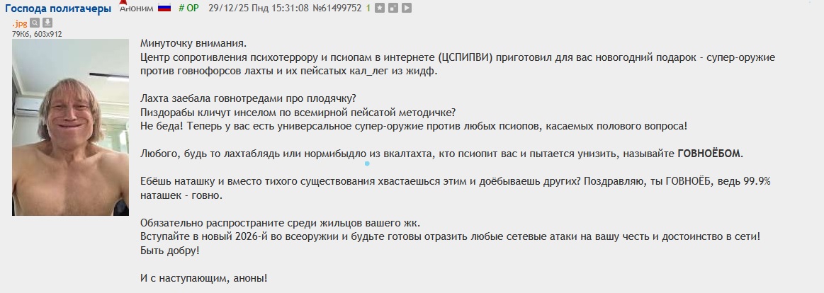 Аноним ID: Циничный Ежик в тумане28/12/25 Вск 00:26:22№6149092698