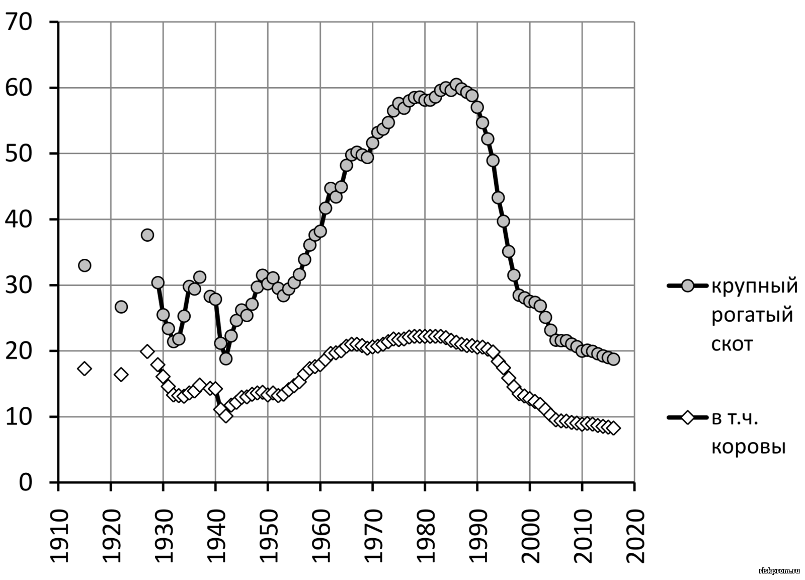 > Очевидное предложение, что племенной скот, производство средств производства, не может стоить как свинья на прилавке, и надо цену поднять, чтобы не допустить разбазаривания многотысячных активов в абстрактном госкармане за сотни рублей в джинсах конкретных комсомольцев — было, например, проигнорировано, с результатами все столкнулись к 91-93-му году.